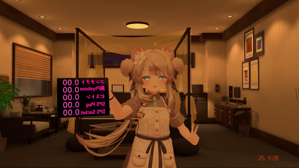 PhysBonesやSPSなど、VRChat側からアバターの動きに応じて送信されているOSCパラメータの値を、デバッグ用にアバターギミックのタブレット上に表示する機能です。メニューから表示のON/OFFとワールド固定のオンオフを切り替えられます。